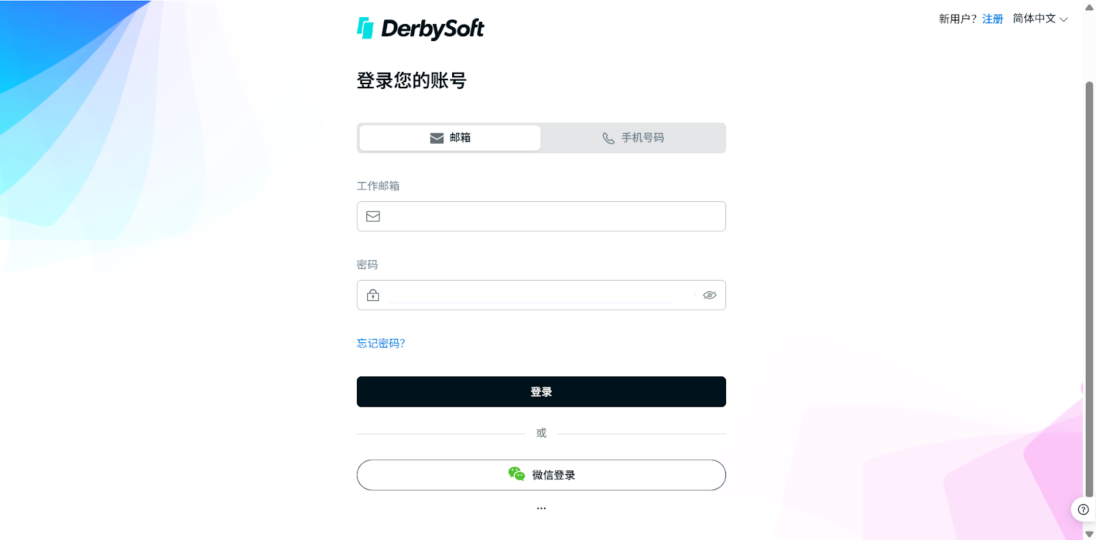 - 点击开始使用进入注册/登录页面。
