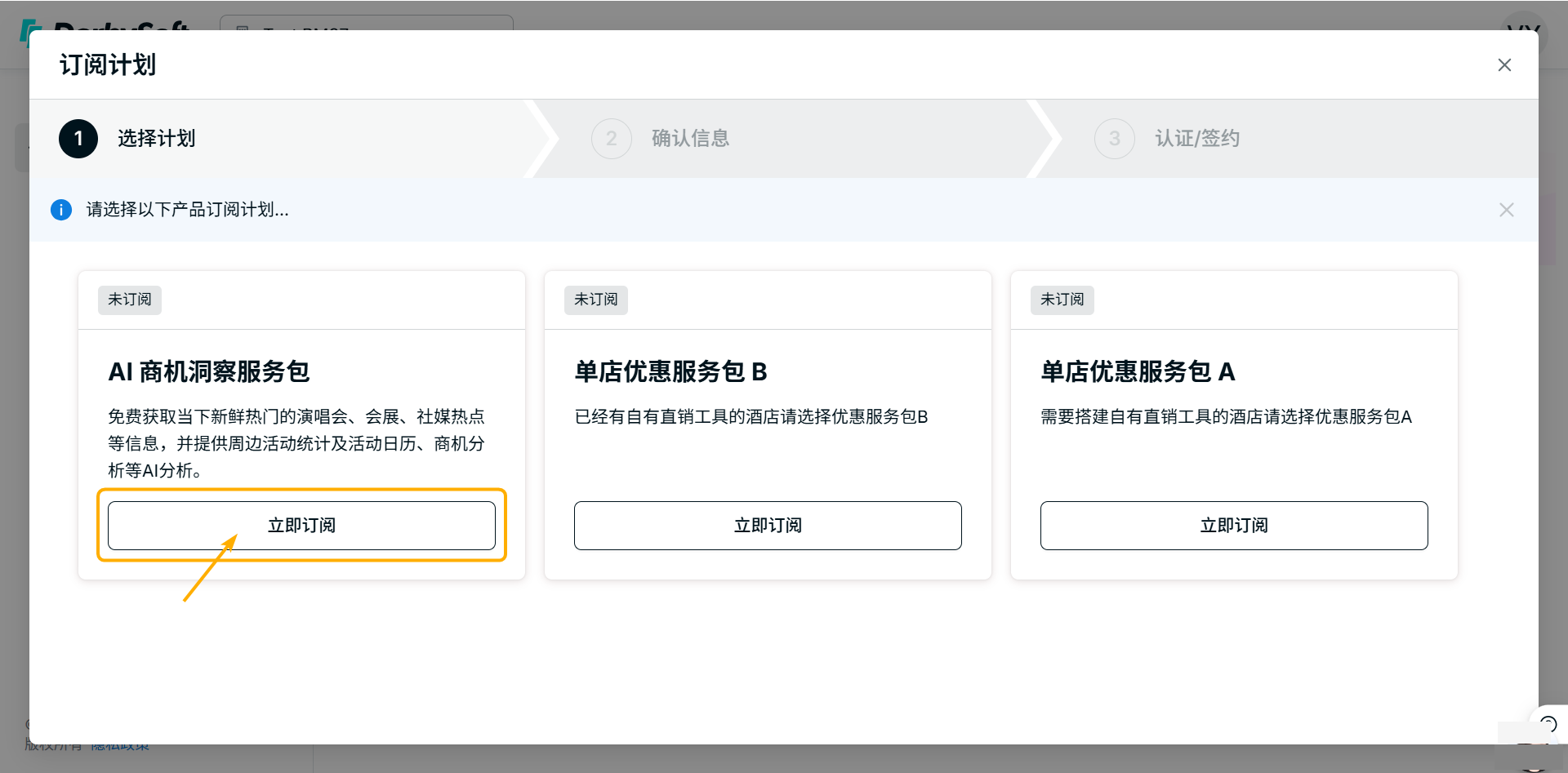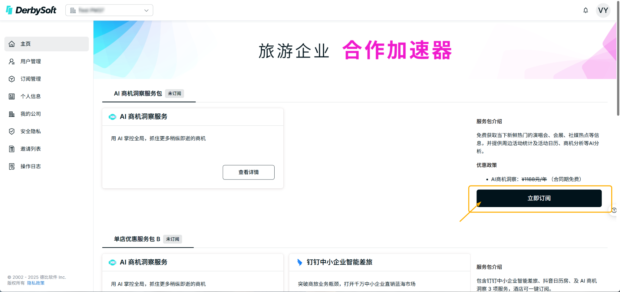 - 点击立即订阅,选择 AI 商机洞察服务包。